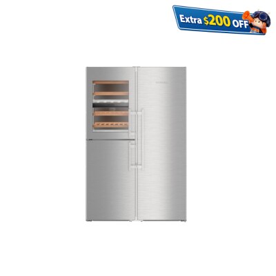 Imported 3 doors freestanding side-by-side 120cm Fridge-Freezer-Wine 3-in-1 cooling appliances. Made in Germany