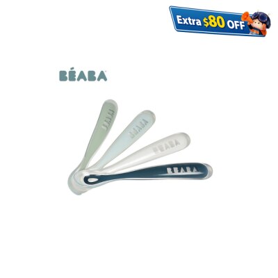 Ultra supple complete silicone envelope spoon. For better hygiene, gentleness on gums and to ease the transition from teat to spoon.