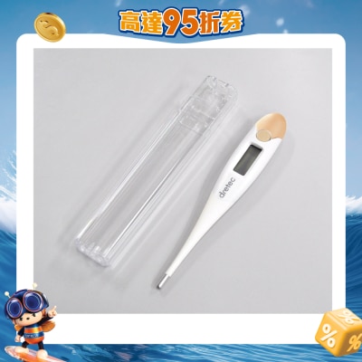 Anti-bacterial property allows to keep this thermometer clean (Except for battery lid)/Estimated thermometry : about 30 seconds/Flexible probe fits to the arm