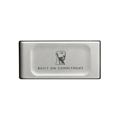 Kingston XS2000 portable SSD features high-speed storage in a compact, pocket-sized design. It uses USB Type-C® for connectivity, is water- and dust-resistant, and includes a removable rubber sleeve for extra durability.