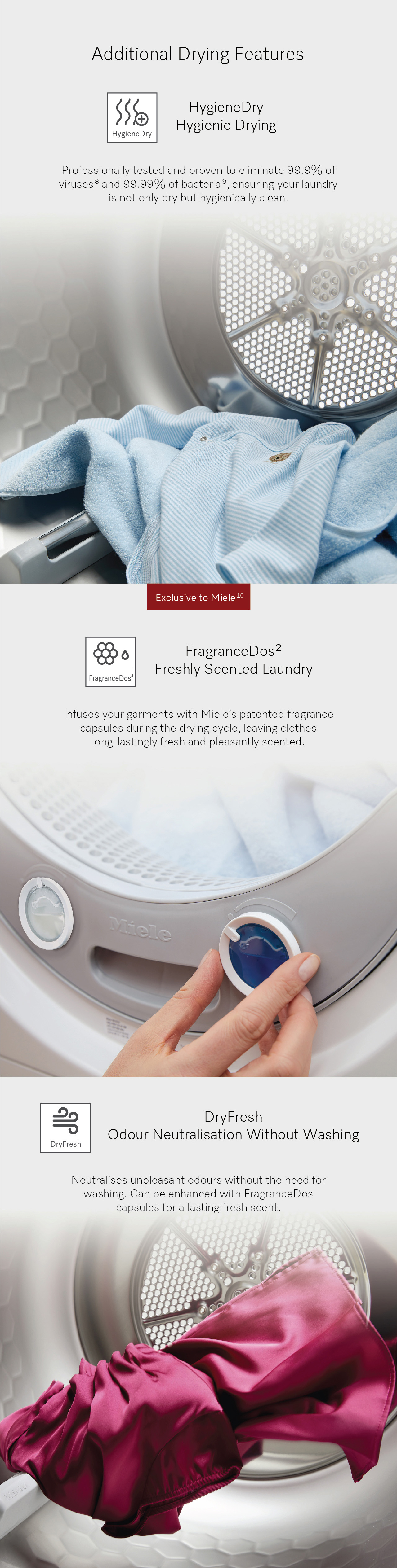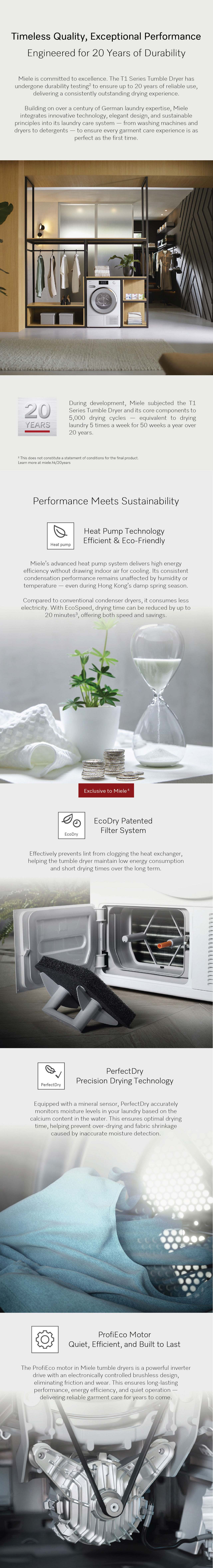 The new tumble dryer T1, using innovative technology, Miele has perfected the art of dryering laundry: perfectly dried, freshly scented, soft and fluffy.
