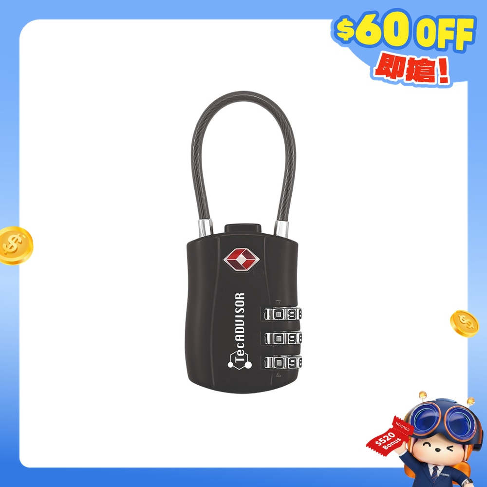 3-digit combination travel cable lock is approved & accepted by the TSA, allowing security to inspect your luggage using special keys without damaging the combination lock. Protect your items during transportation.
