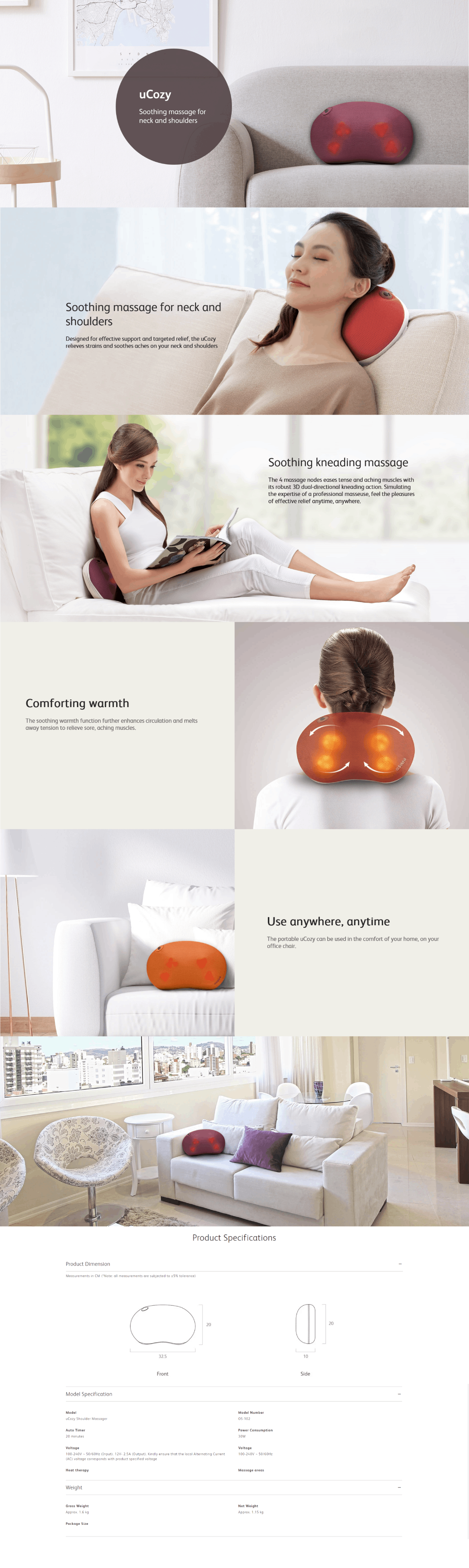 The 4 massage nodes eases tense and aching muscles with its robust 3D dual-directional kneading action. Simulating the expertise of a professional masseuse, feel the pleasures of effective relief anytime, anywhere.