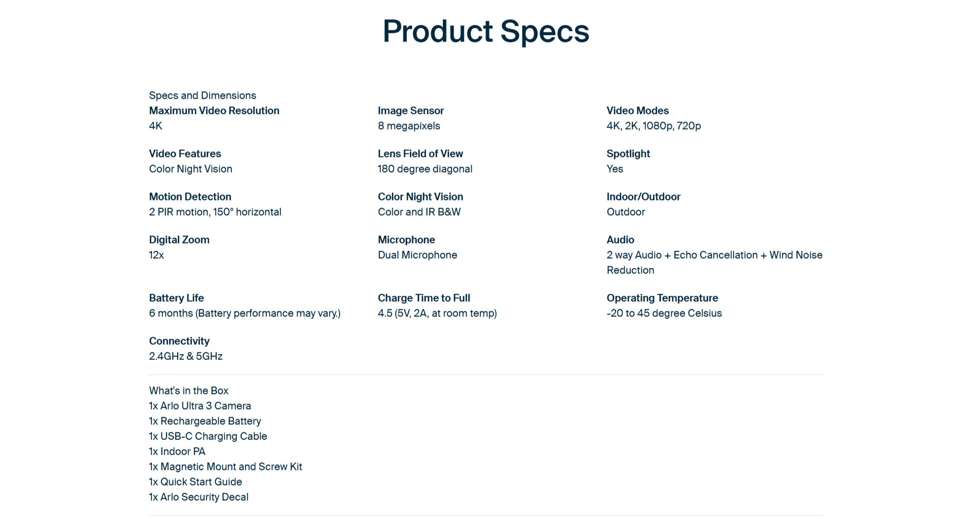 Arlo Ultra 3 (VMC5050) 4K UHD Add-on Camera (Work with VMS5250 or VMB4540)