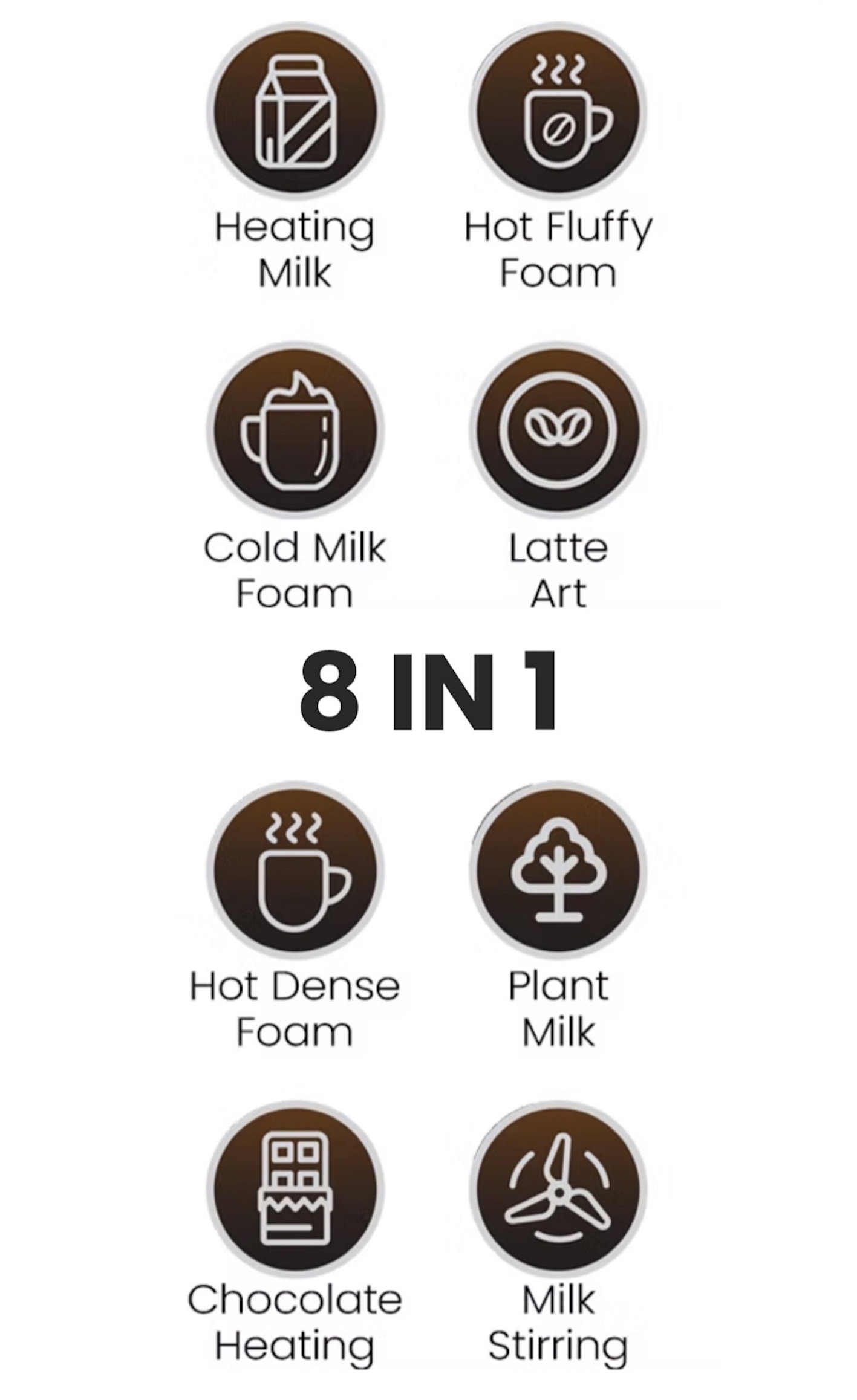 VISCID Multi-Function Milk Frother! Create tasty drinks & Latte art for your coffee! Easy 4-in-1 Programs for cold foam, light warm foam, thick warm foam & warming without foaming. For cappuccinos, lattes, iced coffee, matcha and more!