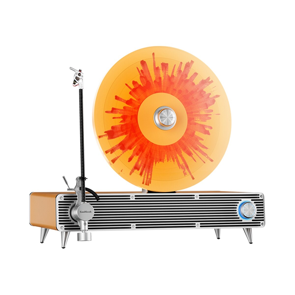 The original upright turntable combined with the sound quality of a vinyl record player is a collision of fashionable appearance and classic music mode.