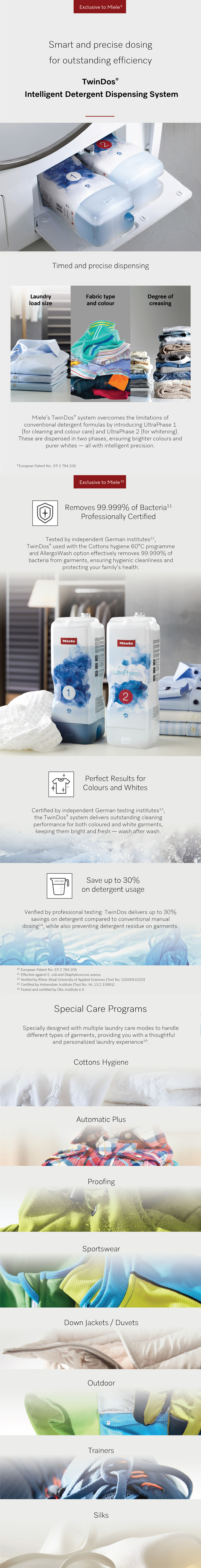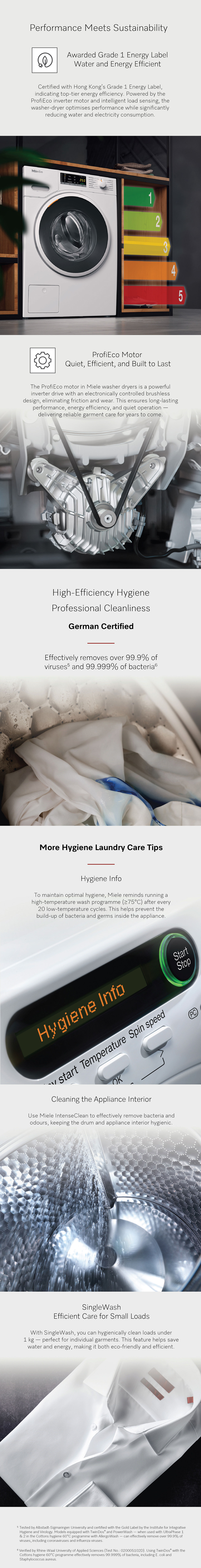 Miele 2-in-1 washing machines - Exceptional quality and durability, Miele carries out intensive endurance tests during the development phase in order to meet the highest quality standards. Honeycomb drum provides gentle laundry care.