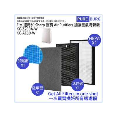 Pureburg Z280 Compatible Replacement Filter Kit for Sharp KC-Z280A-W KC-AE30-W Air Purifiers