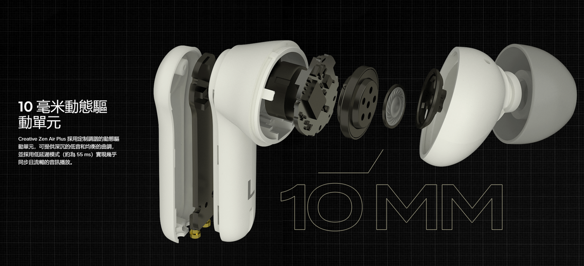 10mm dynamic driver, it also has noise control features like hybrid active noise cancellation (ANC), classic Bluetooth 5.3 with AAC audio transcoder, and IPX4 water resistance.