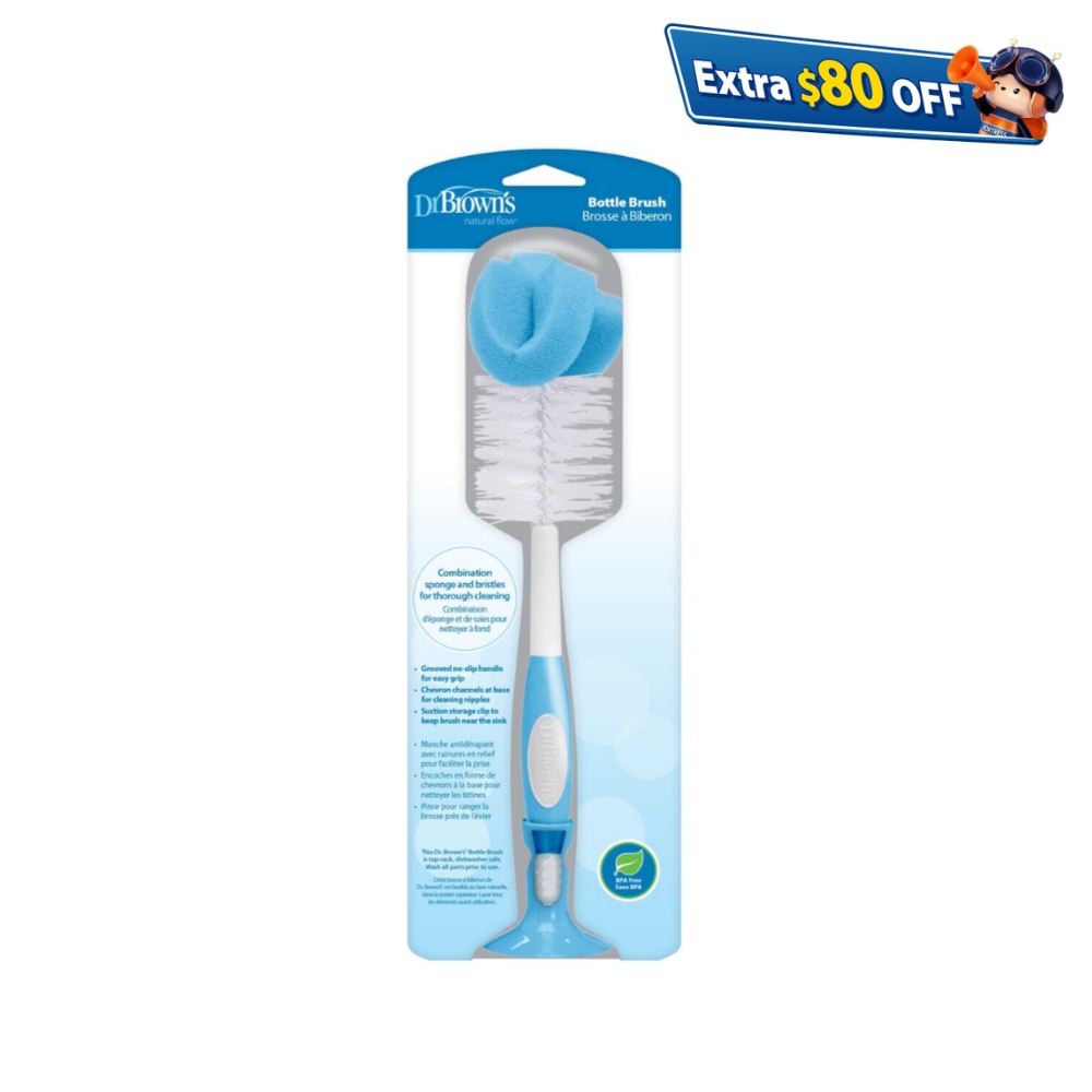 採用海棉刷头及尼龙刷毛,彻底清洁奶樽,防滑流线形手柄,清洁奶咀专用的凹凸纹柄端,特设吸盘底座,可凌空挂起或吸附于牆壁,方便晾乾及收藏,清洁卫生,可置于洗碗碟机顶层清洗,不含双酚A