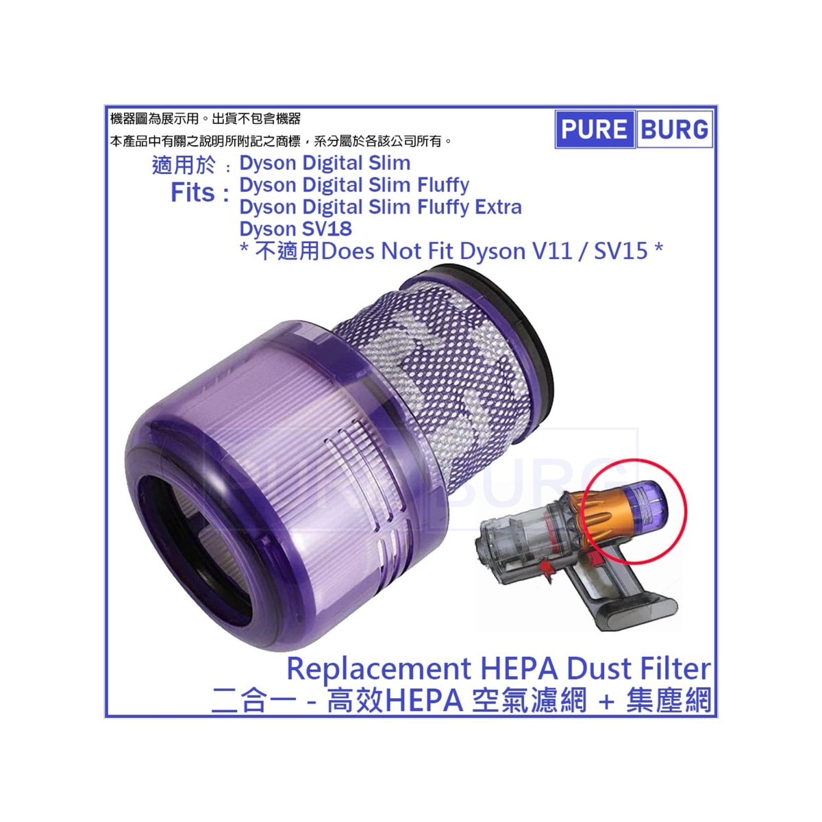 适用于Dyson SV18 Digital Slim / Fluffy Extra 轻量无线吸尘机后置HEPA 2合1代用滤网滤芯