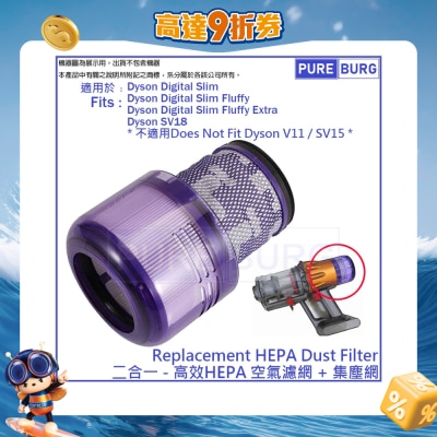 适用于Dyson SV18 Digital Slim / Fluffy Extra 轻量无线吸尘机后置HEPA 2合1代用滤网滤芯