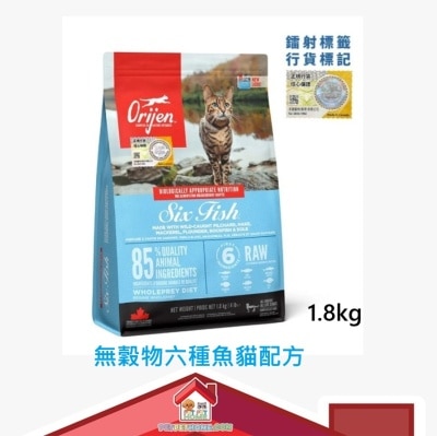 Orijen 无谷物 6 种鱼配方从加拿大海域中选取 6 种鱼类作为原材料,包括:三文鱼 ( 契努克鲑鱼、银鲑和红肉鲑鱼 )、白鳟鱼、灰鳟鱼、北部鲈鱼、淡水鳕鱼和鲱鱼,提供丰富 Omega 3、DHA 及 EPA,令猫猫肌肤和毛发亮丽,维持身体健康。