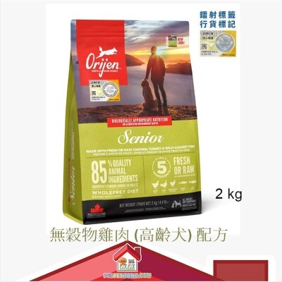 富含38%的营养蛋白和19%的低血糖碳水化合物,Orijen 无谷物鸡肉 (老年犬) 配方粮能满足老年犬只的营养需求。