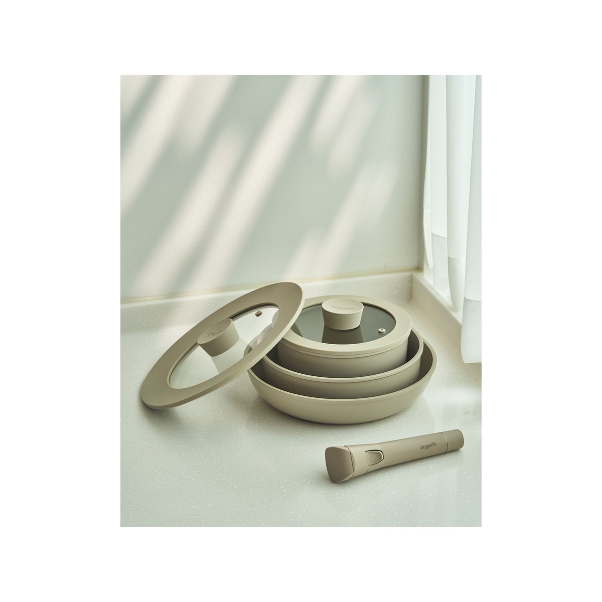 以不锈钢用韩国着名POSCO高强度不锈钢/涂层採用KFCC Ceramica forte 6 第6代天然陶瓷/锅盖以耐高温矽胶及钢化玻璃製造,满足多款锅型大小 (22/24/26cm直径均可) /可拆除式矽胶把手,承重高达10kg,亦可调校配合不同锅具厚度使用