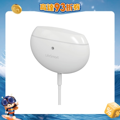 水浸感应器能侦测漏水、水浸情况,防患未然。用家可把感应器的机身主体挂于厨房、洗手间或客厅的墙上,并接上长达1.8米水感探测器;用家可按需要决定水浸感应器离地的高度,而把探测器以垂直或弯曲的方式贴于墙身作侦测。当检测到漏水的情况出现,它便会即时闪烁警报灯,并与APP同步发出通知,更可以AI联动以防湿除患。水浸感应器贴设贴心,若检测器的水感探测头脱落,或可换式钮扣电的电量低于2.2V时,亦会发亮起LED灯,以及在APP发出提示。
