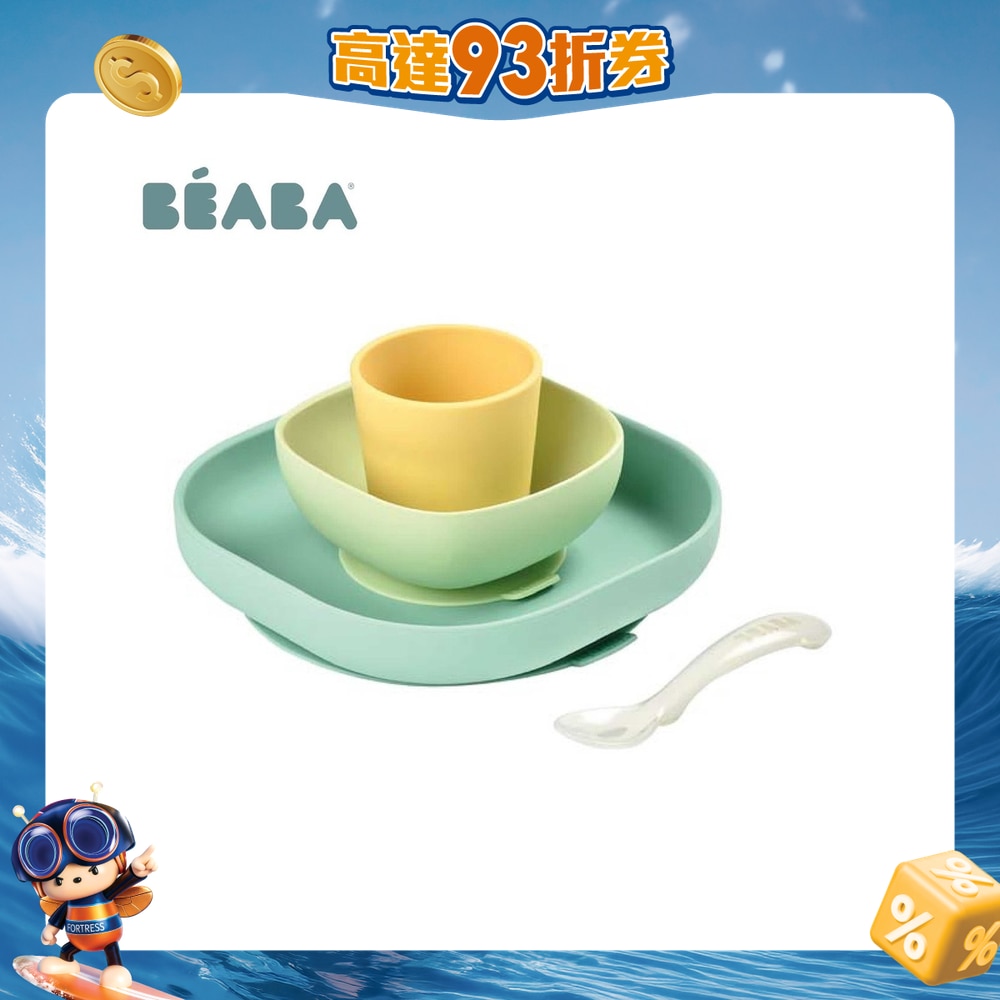 矽胶餐具包括一隻碟和一个带吸盘的碗,以及一个杯子(包括在套装中的矽胶第二阶段勺子)直向或横向扣,有助整理婴儿食物