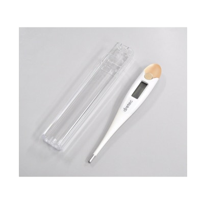 预计的温度测量将在约30秒内完成,将温度计向前弯曲/抗菌树脂可清洁使用(电池盖除外)/预计温度检测约30秒/尖端弯曲以轻轻放在一边/利用记忆功能自动保存上次测量的温度/测量结果为37.8℃时改变蜂鸣器的节奏/自动关闭电源功能/可更换电池/带收纳盒