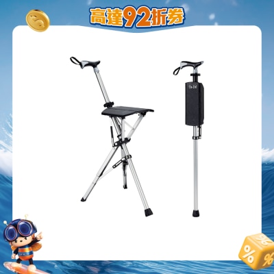 一杖两用,可作手杖支撑身体,可当座椅坐下休息。协助使用者能更平稳的行走,座椅设计则是用于短时间的休息乘坐。