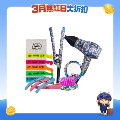 与巴黎艺术家及设计师 Ylan Anoufa 合作打造的限量版图案设计迷你造型套装包括:迷你钛金属造型器 ,迷你折迭式风筒 ,迷你折迭镜梳 ,发夹套装&发带套装