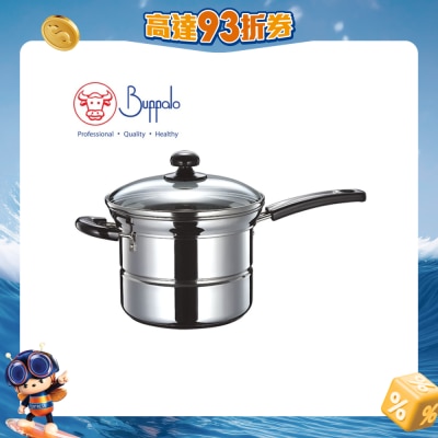 Buffalo 21X16CM/3.5L不锈钢加厚底单柄煲配面条筲箕及蒸片连玻璃盖
