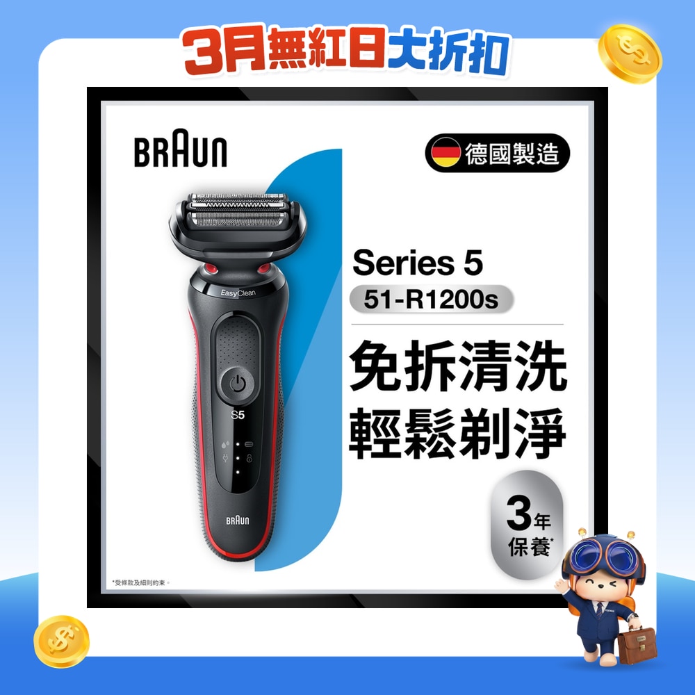 Braun Series 5 集免拆冲洗科技及德国往复式刀头技术于一身,展现Braun对实用及品质的追求。