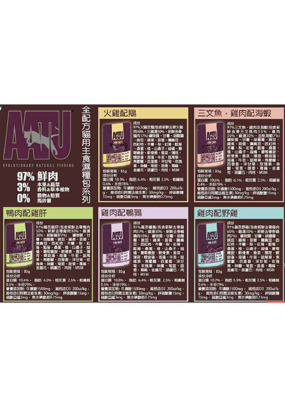 AATU 97/3/0 全配方猫湿粮包 鸡+野鸡(Pheasant) 85g