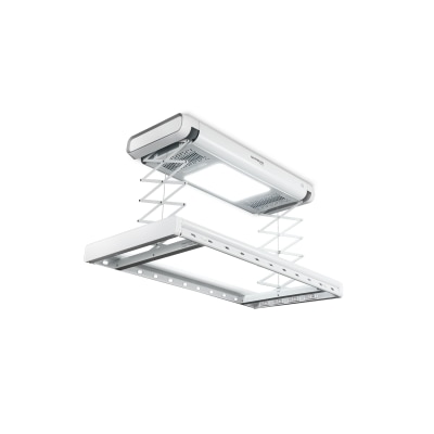 Smart Control App智能遥距控制,随时一键升降或乾衣,毋须使用遥控器,全城「智」细至悭位,客厅、小露台适用,自动升降伸缩晾衣杆,方便晾挂衣物被铺,高效风乾及烘乾,不同类型衣物一概适用,10cm超薄悭位机身,承重量达45kg,适合水泥、石膏、实木等天花安装