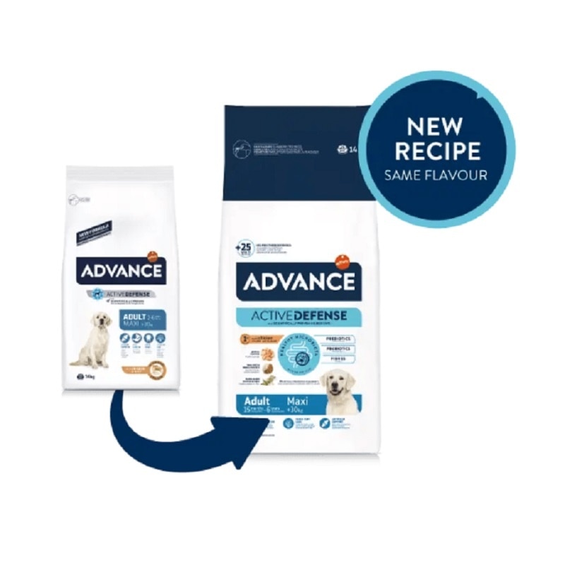 Advance Adult Maxi 是一种易于消化的优质食品,其配方可满足大型成年犬的需求。以鸡肉为第一原料制成。优质蛋白质水平有助于维持肌肉质量,欧米伽 3 和欧米伽 6 脂肪酸有助于健康皮肤和光泽皮毛。 主要成分 在 Advance,我们采用优质原料准备食谱,以确保良好的营养。我们的成人 Maxi 食谱以鸡肉作为第一种成分制成,我们将未经加工的鸡肉融入食谱中,用自己的汁液烹饪肉。鸡肉是蛋白质和维持组织和良好肌肉状况所需氨基酸的绝佳来源。 成份 鸡肉(16%)、全谷类(15%)、脱水家禽蛋白、全玉米、米(10%)、家禽脂肪、玉米粉、脱水猪肉蛋白、脱水豌豆(4%)、水解动物蛋白(家禽、猪肉) 、鱼)、玉米蛋白、甜菜浆(1.5%)、豌豆纤维、小麦中粉、矿物质、菊苣菊粉(0.4%)、猪肉血浆蛋白(免疫球蛋白的天然来源)(0.4%)、葡萄糖胺(390毫克/公斤) ,硫酸软骨素(335 毫克/公斤)。 营养分析 维生素A27000国际单位 维生素 D31200 国际单位 维生素E500毫克 维生素 C70 毫克 牛磺酸1200毫克 一水合硫酸铁 (II)260 毫克(Fe:86 毫克) 碘化钾1.9毫克(I:1.4毫克) 五水合硫酸铜(II)33 mg(Cu:8.8 mg) 一水硫酸锰123毫克(Mn:40毫克) 一水硫酸锌406毫克(锌:148毫克) 亚硒酸钠0.2毫克(Se:0.1毫克) 动物技术添加剂:肠道菌丛稳定剂:贝莱斯芽孢杆菌 DSM 155441x109 cfu。 含抗氧化剂。 分析成分 25% 粗蛋白 14.2% 粗脂肪 3%粗纤维 6.5% 粗灰分 0.25% 欧米伽 3 2.7% 欧米伽 6