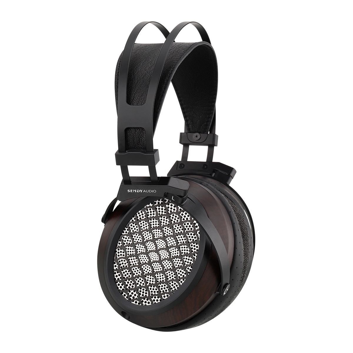 Sendy Audio Aiva 2具备97×76 mm双铷磁阵列平面喇叭, 采用高强度及高刚性的薄膜材料,厚度只有1微米。耳壳上巧妙地镶嵌着经过蚀刻工艺雕琢的不锈钢网,其设计灵感源自美人鱼那独特的鳞片排列。其倾斜耳罩设计, 亲肤绒材质