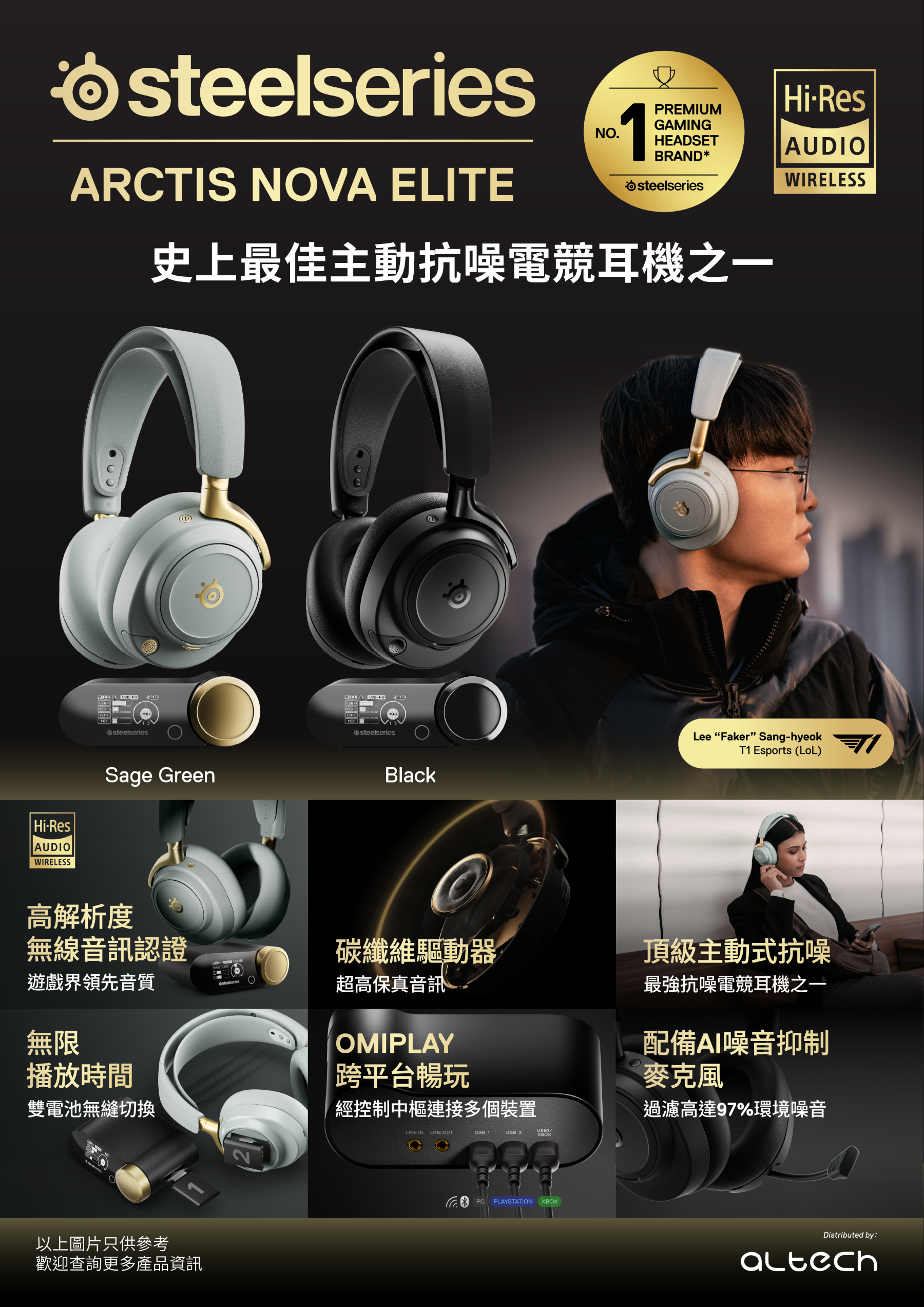 SteelSeries 全新旗舰产品Arctis Nova Elite, 打造发烧级音质游戏耳机,为游戏耳机市场创建全新「奢华品」类别,缔造具 Hi-Res 无线认证跨系统沉浸式聆听体验