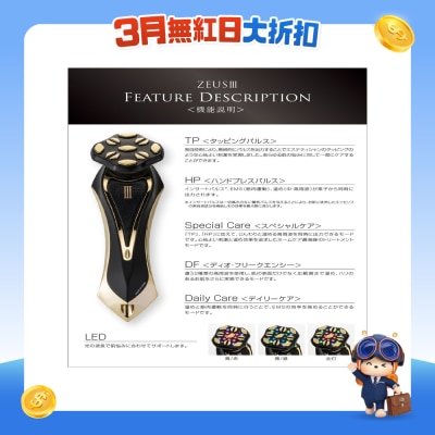 6 种可切换模式刺激肌肉和温热皮肤,透过活跃表层至真皮层的血液流动和淋巴流动,将营养加强渗透,即时收紧浮肿、皱纹。敲打脉衝, 手按脉衝, 特殊照护, 双频, 日常护理, LED. 日本制造