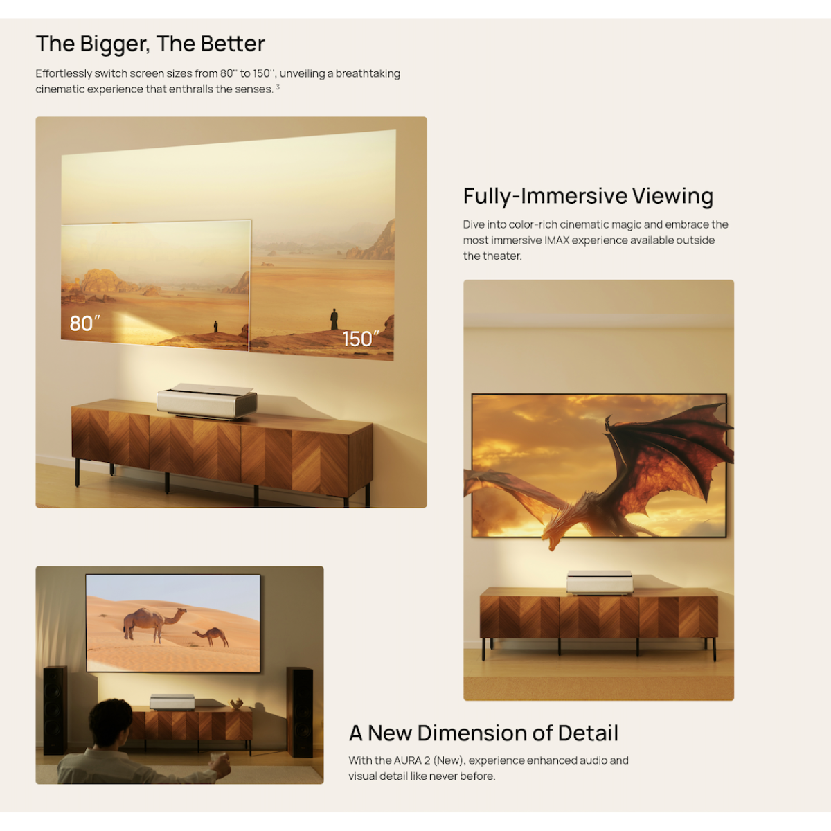 XGIMI AURA 2 是一款兼具家居美学与实用功能的激光电视,采用极简主义的家居设计语言,将复杂的机身线条和结构线处理得极其简洁。