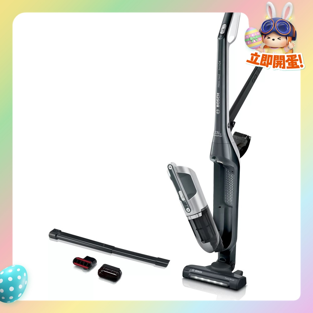 Bosch 21.6V (23V max) 2合1直立式吸尘机. 2in1功能:手提式和直立式吸尘机 配件一体收纳 充电 5小时,可使用高达约50分鐘 (Level1)