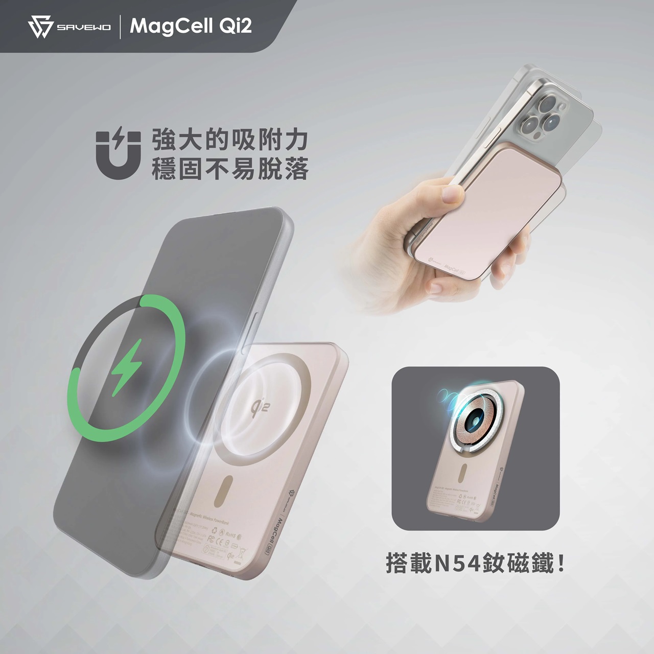 CCC 认证 MagCell Qi2 MC511Q2,WPC Qi2官方认证 (QI-23671),厚度仅有8mm,轻巧便携,强大性能,高贵材质。同时开发的姊妹型号MC511QF,更取得Apple Mfi 认证,在完全不增加体积的情况下,内置FindMy定位功能!