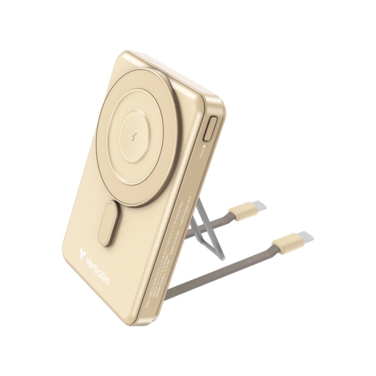 Verbatim Charge 'n' Go 5 合 1 磁性无线行动电源专为拥有多台装置的使用者设计,提供全面的充电解决方案。这款行动电源配备无线充电板、2 条满足常见充电需求的内建电缆以及双向快速充电 USB-C 端口,可让您同时为多达 4 台设备充电。无论是您的手机、耳机或智慧手表,这款行动电源都能有效满足您所有的充电需求。其时尚的设计不仅节省空间,而且无需携带多个充电器,简化了您的充电过程,同时保持连接。