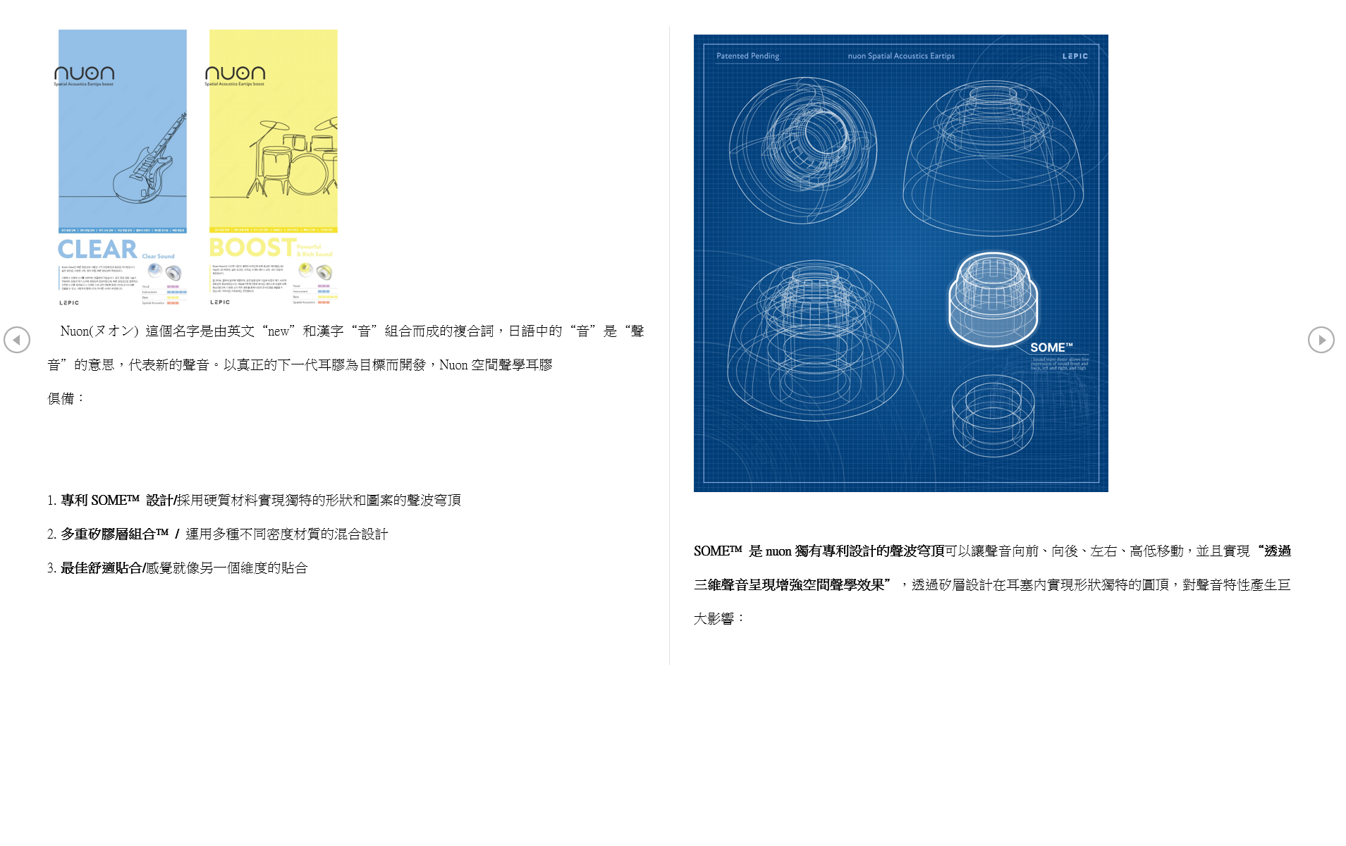 Nuon(ヌオン) 这个名字是由英文“new”和汉字“音”组合而成的复合词,日语中的“音”是“声音”的意思,代表新的声音。以真正的下一代耳胶为目标而开发,Nuon空间声学耳胶