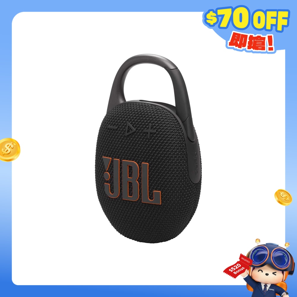 JBL Clip 5 具备真正的音乐衝击力,提供具有强劲低音的强大 JBL Pro Sound 音效。您的朋友不会相信如此小巧的喇叭能发出这般震撼的 JBL Pro Sound 音效。