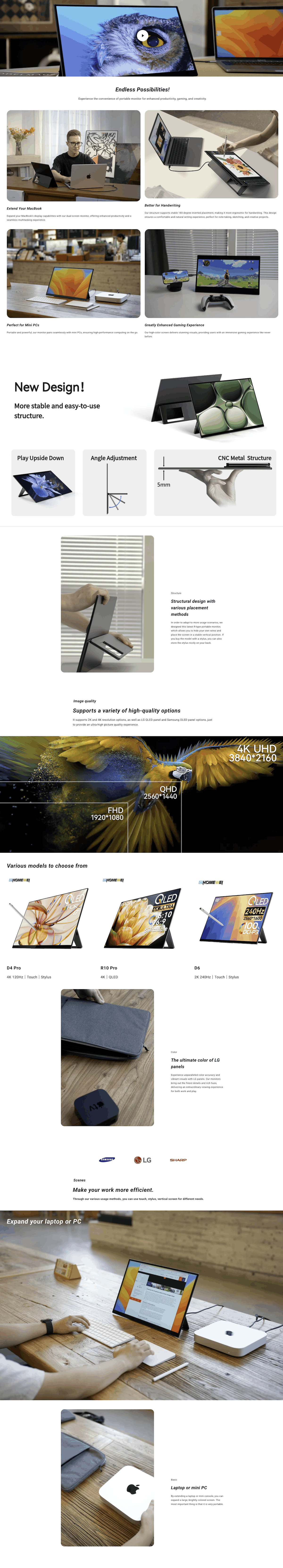 LG 原厂护眼屏/超轻薄,只有4mm的厚度/支援Windows /Mac 多点触摸, 同时 Mac 支援自订触控手势/CNC太空铝一体成型/萤幕跟支架分离式设计,萤幕的寿命更长/手写笔支援4096级压感