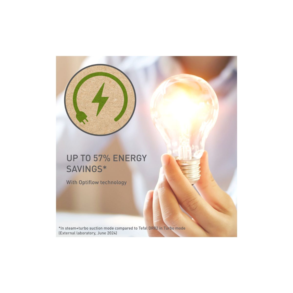 Tefal 专利OptiFlow 技术 (蒸气、吸力二合一) 30秒快速预,热连续使用时间6分鐘,自动安全熄机,法国製造 1400瓦