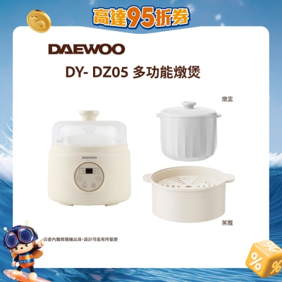 DAEWOO 新出多功能炖煲,精烧白瓷炖盅,一款有齐六大功能:炖汤,粥糊,甜品,蒸煮,焖饭,保温可选择。产品加配蒸笼,可体验上蒸下炖的高效料理。细小机身方便收纳,分体式设计方便清洁。12H保温及15H预约的定时设计,随时享用美食