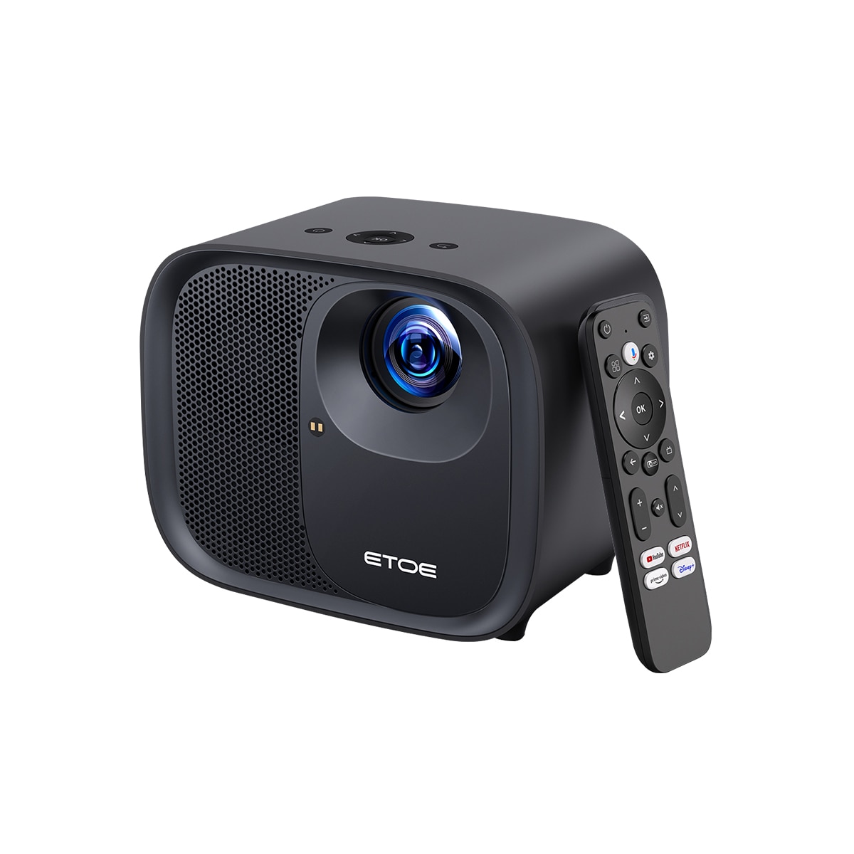 投影机 + TV stick 2合1, 可透过Android TV™ 11.0, 你喜爱的应用程式:NETFLIX、GooglePlay、YouTube等, 2×10W强劲扬声器, 内置Chromecast, 自动镜头对焦和梯形校正, 显示晶片:4吋LCD, 解析度:1920*1080P, 亮度:500 ANSI