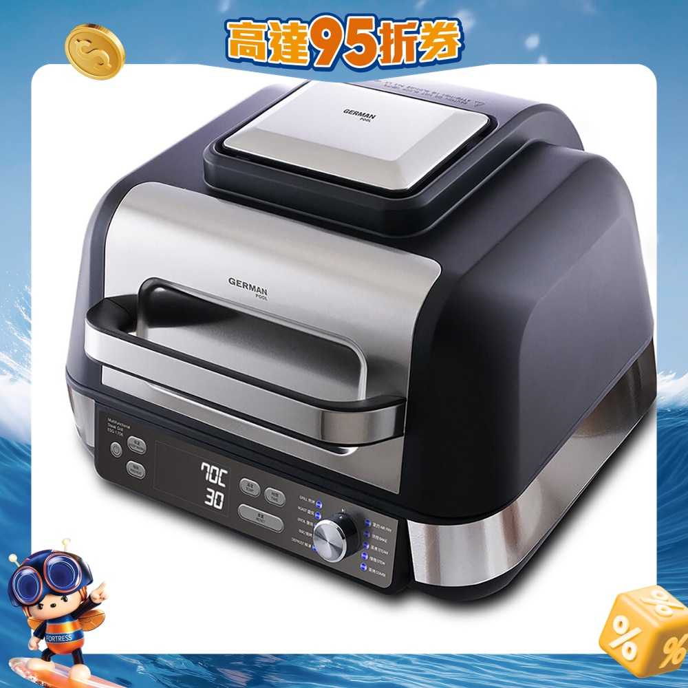 轻鬆炮製米芝莲级焦香嫩滑坑纹牛扒,10 合 1 多功能:煎、烤、蒸、气炸、烘焙等,60-250°C 精準控温,生熟口感完美掌控,1,750 W 强劲火力,立体加热极速烹调,自助式 BBQ 派对神器,烧烤及保温兼备,坑纹煎烤锅导流多馀油脂,食得健康低脂,,纤巧悭位机身,可拆式炉头易洁易收纳