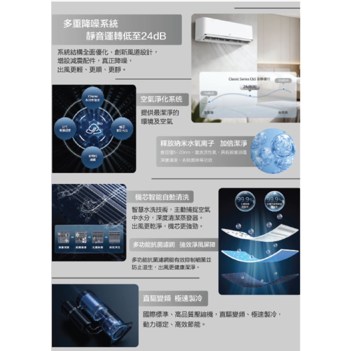 CB5直驱变频系列分体式冷气机 - 1匹 / FAC09CB / Wi-Fi 遥控 / 冷电浆 / 自动清洗 / 多重过滤