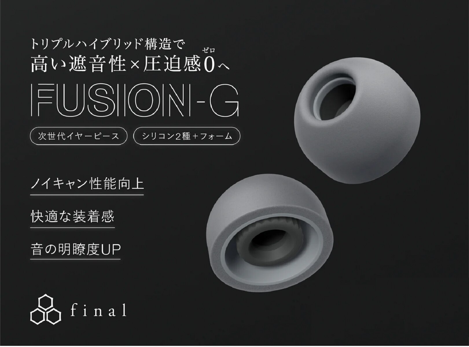 外柔内刚! final推出革命性新款耳绵混合耳胶 Fusion-G,耳帽内层柔软矽胶确保佩戴感,外层使用高级泡棉隔音,适合有线耳机、无线耳机