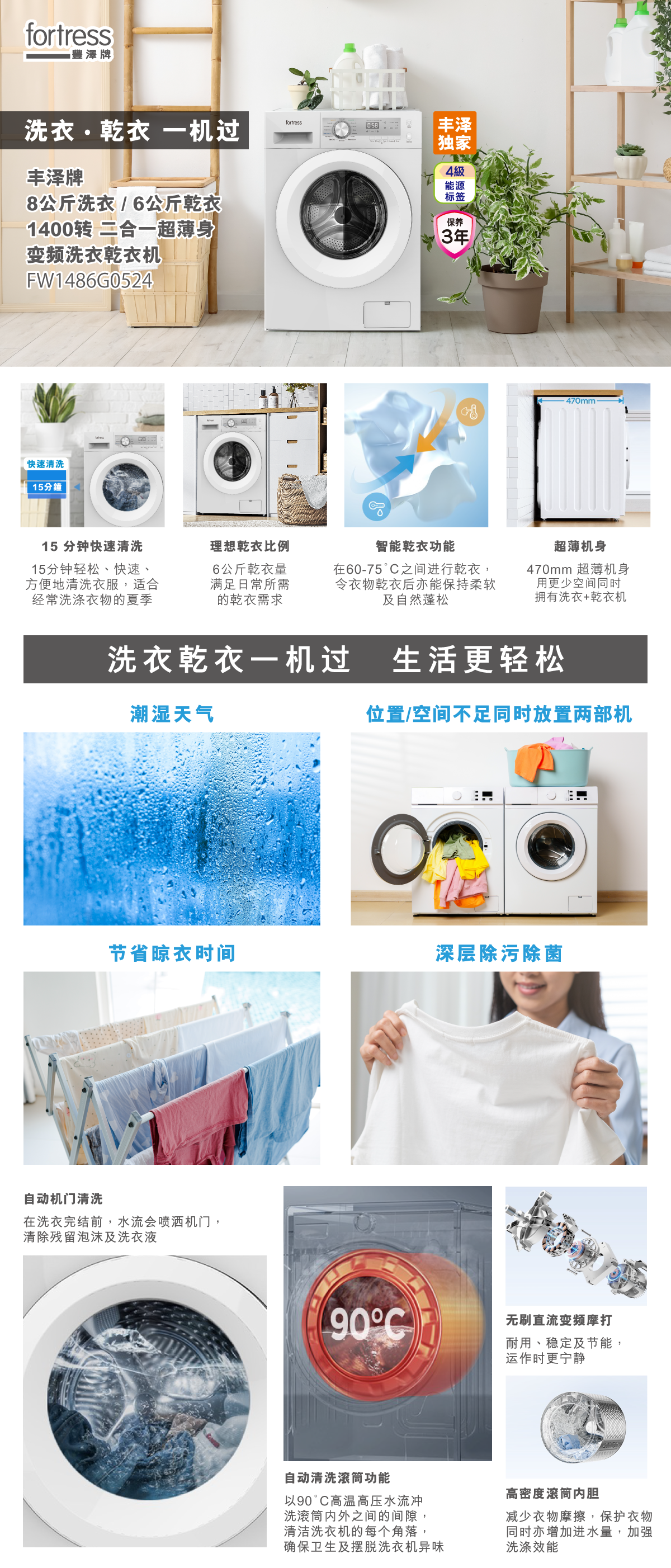 FW1486G0524 8公斤洗衣/6公斤干衣 1400转 薄身 变频 2合1洗衣乾衣机