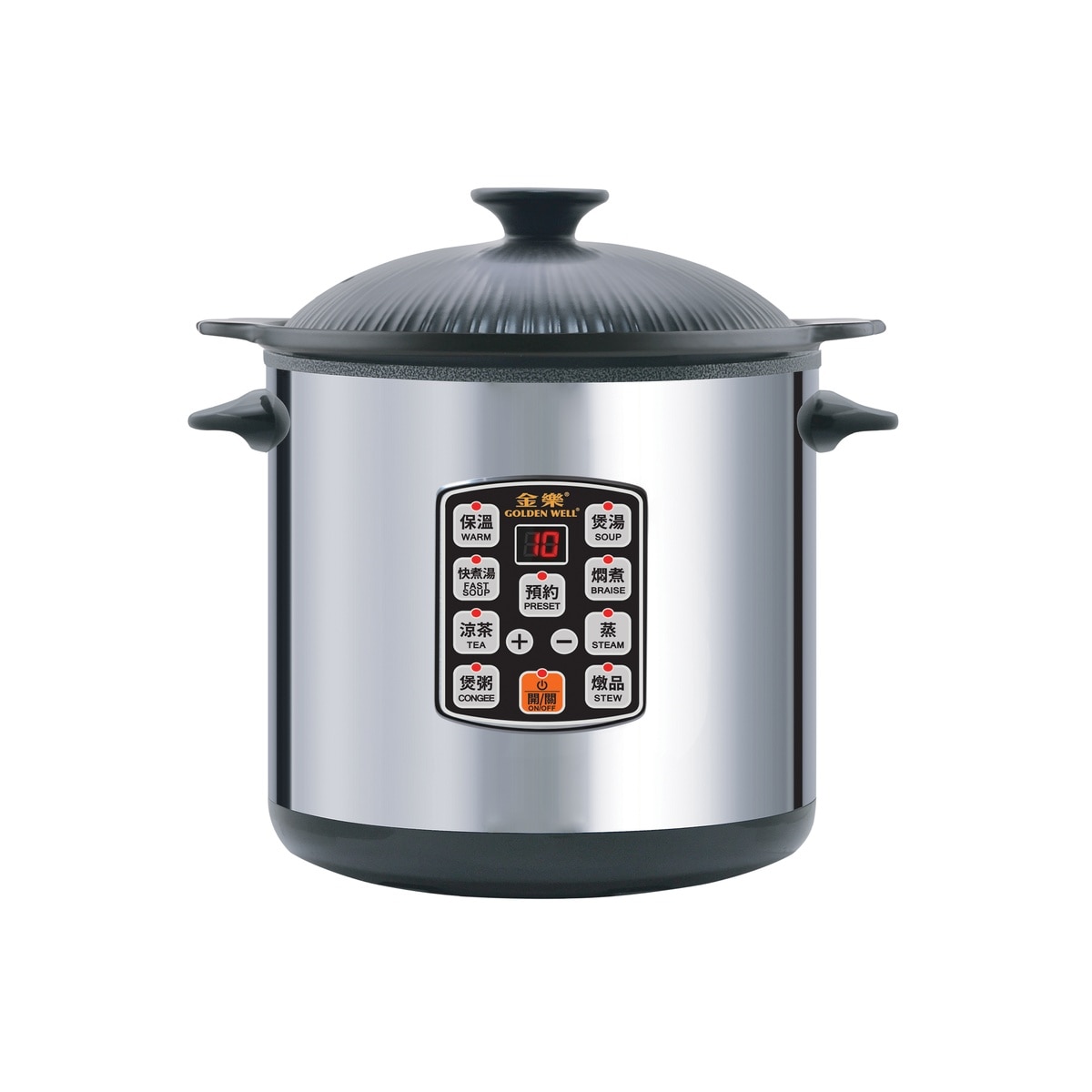 内锅采用天然陶瓷原料,经高温烧制而成,烹调食物更富健康美味。多种烹调功能,适用于老火汤、煲粥、焖煮、炖品、姜醋。预约时间功能,令烹调更省时便利。增设广东话语音提示。