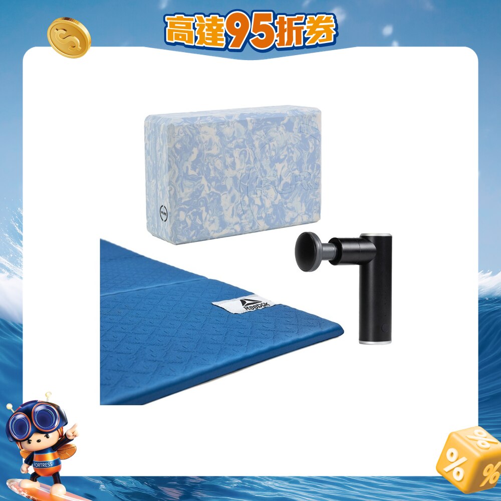 内容包括: PURE Apparel 瑜伽砖, REEBOK 6mm 摺叠瑜伽垫 ,Booster Microbot 超迷你暖头按摩枪