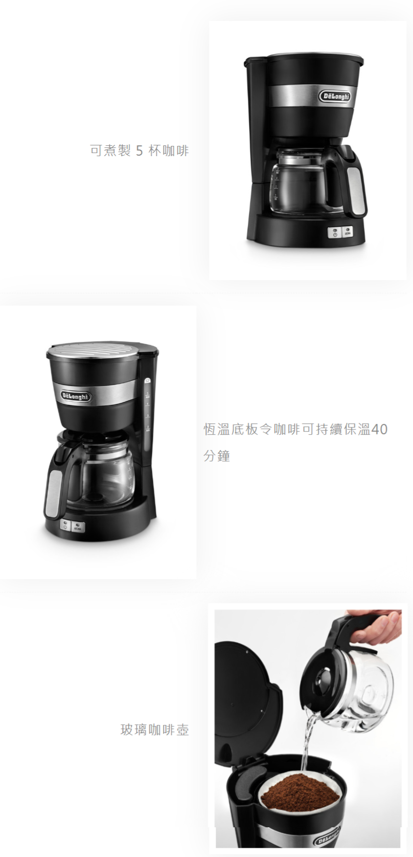根据您的口味个性化设置咖啡香气。大容量容器可一次萃取 5 杯咖啡。使底盘保温,让您的咖啡不会变冷。2个前置按钮,操作简单。永久滤网和可水洗的容器,易于清洁。