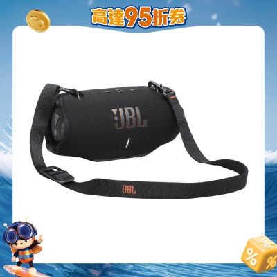 JBL Xtreme 4 便携式防水扬声器凭藉两个强大的低音扬声器和两个高音扬声器,即使在最高音量下也能提供令人惊嘆的动力,带来更高级别的震撼 JBL Pro 音效。